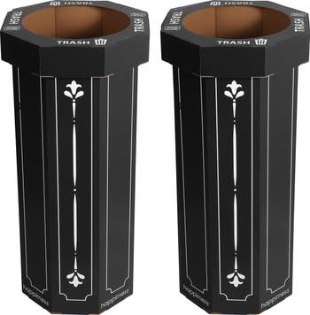 Upgrade any event with the traditional style of these recyclable trash cans. Made from corrugated cardboard, each holds a large 30 gallon trash bag with a separate lid to hide the bag edges. This set of two disposable trash cans is perfect for using indoors or outdoors for a variety of occasions.