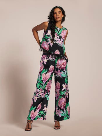 Orchids and protea bloom on a hazy island evening. Along the garden path strolls a chic Parisian traveler, snapping photos of the display. A statement top like Veronica can turn any look into a moment. This cropped sleeveless shell features ostrich feather trim that flutters as you move. Made in soft Mulberry silk. 100% Mulberry silk Sleeveless Cropped length Ostrich feather trim Dry clean only.