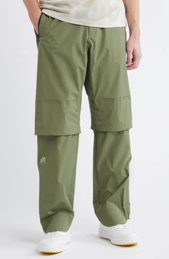 Brave the challenges of the day in these rugged, waterproof pants made with wide legs and featuring snap buttons at the knee to adjust length.