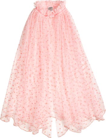 This pink tulle cape covered in tiny flocked hearts adds the perfect touch of sparkle and sweetness to any outfit! With its soft ruffled neckline and flowy hem, it’s a dreamy accessory for dress-up days or Valentine’s fun.
