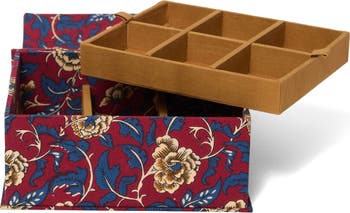 Made from cotton with a hand-printed floral design, this jewelry-organizer box is a beautiful and functional way to store your collection.