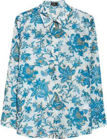 Etro brings boho eclecticism to the fore with this silk-softened cotton button-up shirt featuring a vibrant placement print of flora and entwined with house-signature paisley leaves against a crisp white canvas.