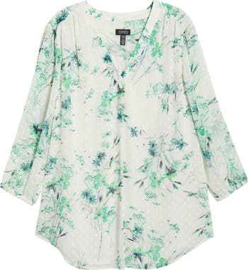 Tonal clip dots texture this blousy top covered in enchanting blooms and finished with a curved hem.
