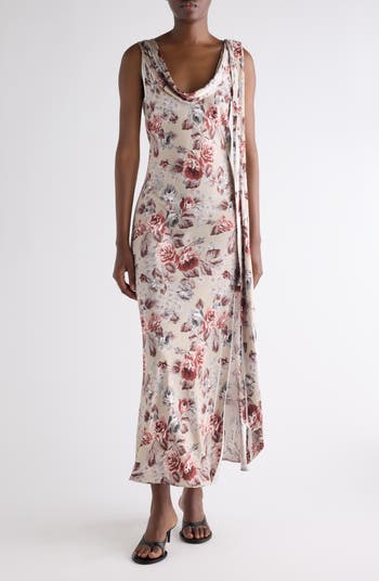 Fluid stretch-satin gracefully skims your shape in this cowl-neck midi dress with scarf-like panels that enhance its languid drape. The moody floral print harkens back to the Stockholm-based brand s 90s beginnings.