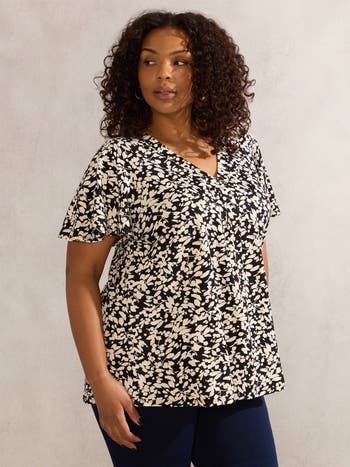 Floral Print Jersey Pleat Front Top