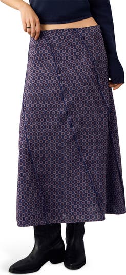 An allover print enlivens this lightweight A-line maxi skirt trimmed with floaty asymmetric seams.