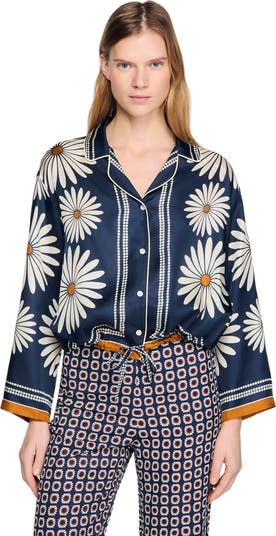 Floaty, floral-print silk shirt with a lapel shirt collar, long sleeves and a button fastening at the front.