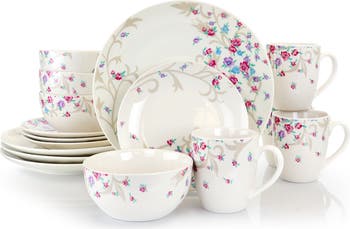 Floral Splash 16 Piece Round Fine Ceramic Dinnerware Set
