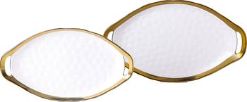Make your guests say, "œwow" with the Stone Lain Florian porcelain oval serving plate set with handles. Pair it with our best-selling Florian dinnerware set to complete the look, or let it be the star of a more simple table setting"ineither way, the gold trim and thumbprint pattern make an elegant statement. The set comes with two pieces, a medium and a large.