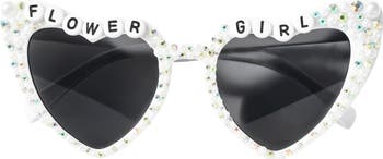 Don t forget the littlest member of your bridal party! These adorable kids size heart sunnies are perfect for your little Flower Girl! Hand studded sunnies with crystals, pearls and the cutest "Flower Girl" lettering. Each pair is hand-made and therefore unique.