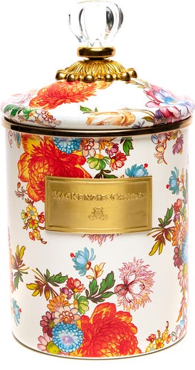 Fill your home with the riotous color of the lush English garden that blooms against this enameled-steel canister you ll love displaying on a kitchen counter as it stores your pantry staples.