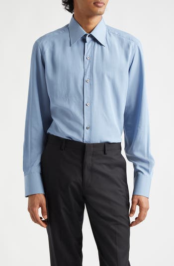 Tom Ford introduces another timeless capsule-wardrobe essential with this silk-kissed button-up elevated with lustrous mother-of-pearl buttons.