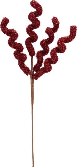 - A vibrant red foam and tinsel curly stem, perfect for festive seasonal accentsIdeal for winter and Christmas styles, adding playful flair and sparkle to holiday displaysUse it to enhance wreaths, centerpieces, holiday arrangements, or decorative vases with whimsyMade of Styrofoam, plastic, and metal27" H