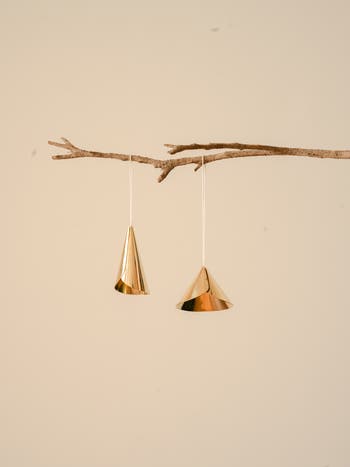 Use the petite fold ornaments to bring plenty of charm to the Christmas home. Handcut out of a metal sheet folded to create a simple curved bud-like silhouette with a beautiful finish. Made with solid brass. Sold as a set of 2.