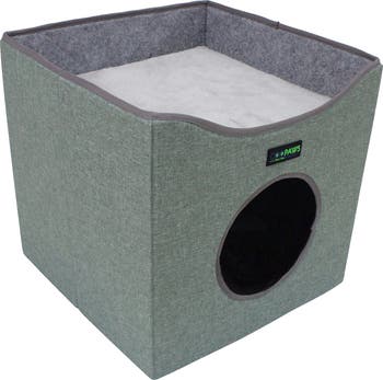 - CAT CAVE: Some cats are a bit shy and like to hide in this cat condo because it’s equipped with a soft reversible cushion that offers a lot of comfort in summer as well as in winter. The top of the cube allows for lazy lounging as well.STYLISH DESIGN: Place it next to your sofa, in your bedroom, or on a cube shelf organizer; you can also fold it up and place it in a different place every time.