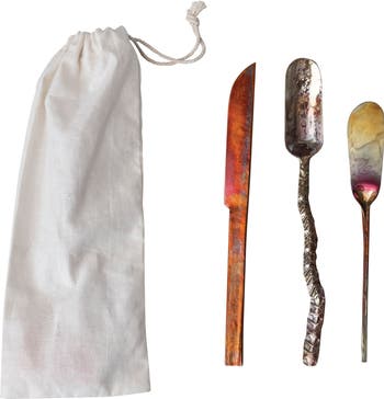 - This French country-inspired set of forged copper appetizer cutlery showcases 3 whimsical silhouettes in a burnt finish