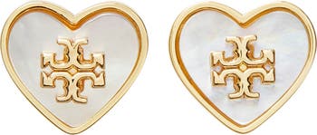 Add rosy romance to everyday ensembles with these heart studs that feature pink mother-of-pearl inlays.