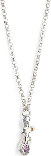 A stone-studded angel charm graces this necklace plated in fine metal.