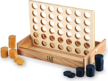 Looking for a new 2-player game? Add this classic strategy game to your collection! Simple and elegant, Four and Win is designed to be tons of fun and look good doing it. Streamlined for easy storage and crafted from wood with blue and yellow game pieces for a vintage feel, it’s perfect for family night or happy hour.