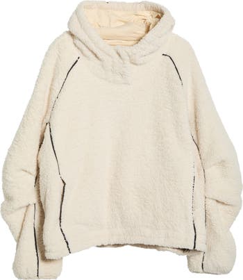 This oversized fleece hoodie features voluminous raglan sleeves and elasticized trim, giving it a cool, slouchy fit.