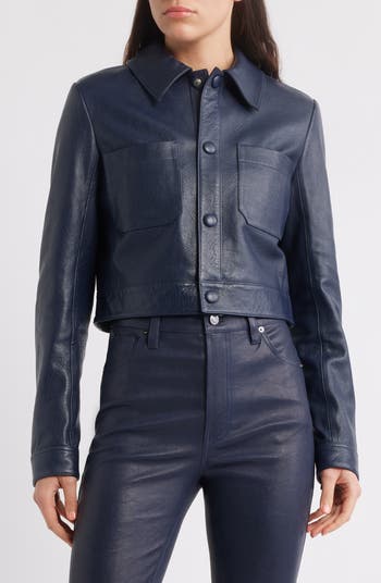 A deep shade and cropped length add to the edgy style of this buttery leather jacket that will elevate anything you pair it with.