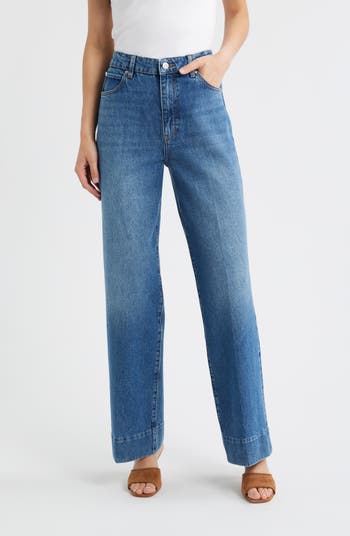 Look as good as you feel in these high-waisted jeans crafted from premium nonstretch denim in a faded indigo wash.