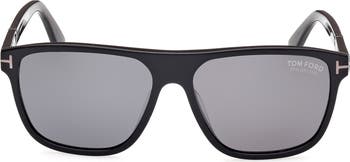 Polished T-logo hardware at the temples adds a refined, signature touch to full-coverage Italian sunglasses fitted with glare-reducing polarized lenses.