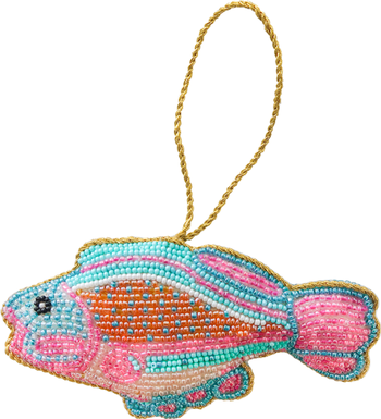 Make a splash this season with Francis de Fish! Featuring shimmering scales, metallic details, and delicate beadwork, this dapper fish is a whimsical addition to trees, wreaths, or gift toppers.
