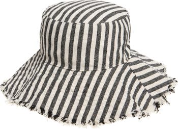 This midweight cotton bucket hat finished with a laidback frayed edge features a wide brim designed to protected your face from sunrays.