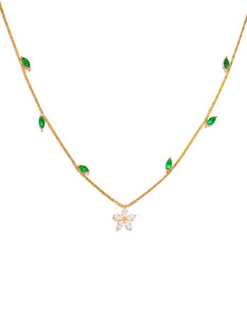 Cubic zirconia leaves and flowers lend organic sparkle to this delicate chain necklace plated in 18-karat gold.