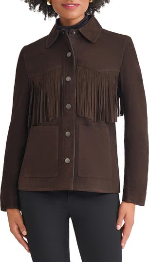 Get your giddy-up on with a genuine suede jacket flickered with a generous dose of fringe from front to back.