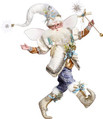 Mark Roberts Frost Fairy holding a snowflake wand is a captivating winter collectible that feels straight out of an enchanted snowfall. Draped in shimmering icy tones with lavish trims and delicate wings, the fairy raises a snowflake wand as if casting a sparkling frost over the season. A stunning accent for holiday décor or a treasured addition to any Mark Roberts collection, it brings elegance, whimsy, and wintry magic to your display.