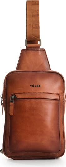 - Semi gloss leather crossbody bag with a burnished finish that highlights the brand’s DNA
