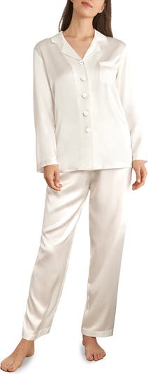Relax and unwind after a busy day and slip into the Long Sleeve Button-Down Silk Pajama Set. The long-sleeved button-front shirt will feel like second nature against your skin. The matching pants have a relaxed and comfortable fit making them easy to slip on.
