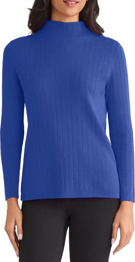 Wide ribbing textures this soft sweater made with a cozy funnel neck and accented with airy slits for easy movement.