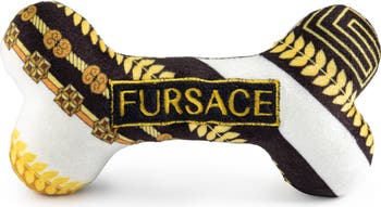 Fashion meets fun for your luxury-obsessed pup in this plush bone with a squeaker inside that provides endless entertainment.