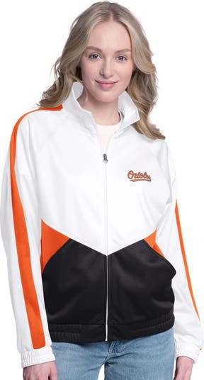 Get ready for game day with this Baltimore Orioles Rally Rhinestone Raglan Full-Zip Track Jacket from G-III Sports by Carl Banks. This stylish track jacket features a modern tapered fit and color block design, making it a fashionable choice for any Baltimore Orioles fan. With screen printed graphics and a full-zip design, it s perfect for layering over your favorite game-day gear.