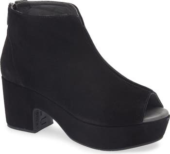 An open toe provides a flirty finish for a suede platform bootie that s a retro-chic standout.