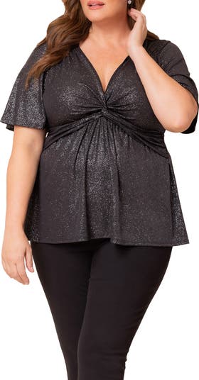 A twisted design at the front creates gorgeous shape on this sparkling, party-ready top designed with fluttery sleeves and a deeply dipped V-neckline.