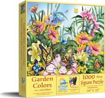 Step into a world of vibrant colors and fascinating artistry with the Garden Colors 1000 Piece Jigsaw Puzzle by SunsOut, designed by the acclaimed puzzle artist Lori Schory. This captivating masterpiece embodies the enchanting appeal of spring s flora and fauna across a 20" x 27" canvas, sprinkled with butterflies and blooms that transform the puzzle assembly into an unforgettable journey through a whimsical garden. The meticulously crafted interlocking pieces provide a stress-free, enjoyable assembling experience, bearing the mark of SunsOut s commitment to high-quality, precision puzzles. Proudly made in America, each SunsOut puzzle is manufactured to superior standards, backed by a worry-free guarantee for missing or damaged pieces. SunsOut celebrates sustainability through its eco-friendly materials, using soy-based inks and high-quality recycled board in every puzzle, ensuring an eco-conscious journey through artfully licensed imagery from top artists like Lori Schory. As a proudly woman-owned small business, every Garden Colors puzzle reflects SunsOut s commitment to creativity, quality, and customer delight. Add the Garden Colors 1000 Piece Jigsaw Puzzle to your collection today and immerse yourself in hours of rewarding, environmentally-friendly puzzle-solving pleasure.