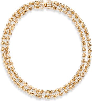 This layered necklace delivers a shimmering stacked look with twisted strands prong-set with Swarovski crystals.