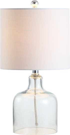 The bottomless bell jar shape of this small-scale table lamp, combined with a classic linen drum shade, create a compelling blend of traditional and contemporary design that is well suited to a variety of design styles. The clean lines of this light fixture will add a fashionable and functional touch to any home. In addition to enhancing your space with its chic design, you can rely on this lamp to last -- it s chrome hardware and UL-rated electrical components make it built to illuminate memories for years to come.