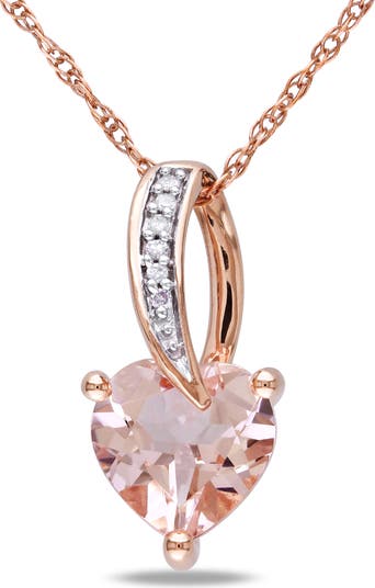 Gemstone Diamond Swirl Heart Necklace 10K