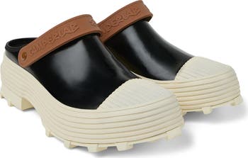 A toothy rubber platform and convertible strap bring modern contrast to this chunky clog finished with a ridged cap toe.