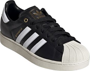 Premium, well-grained leather elevates the upper of a heritage low-top sneaker sporting the serrated 3-Stripes and clamshell toe that have made it an icon since its 1969 debut. Its lace-to-toe profile and herringbone tread preserve the fan-favorite details and sneakerhead enthusiasm.
