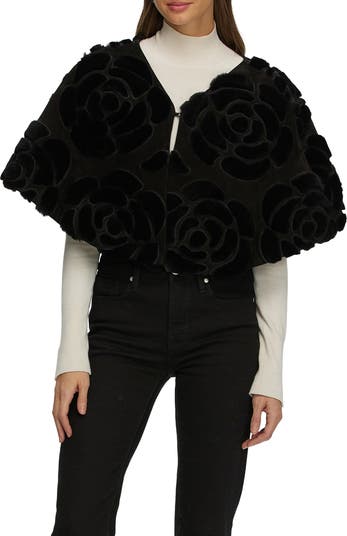 Elevate your evening look with this exquisite Genuine Shearling Stole, featuring intricate floral embroidery for a touch of elegance. Its reversible design reveals luxurious cashmere and wool, offering both warmth and sophistication.