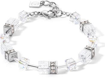 GeoCUBE Iconic Nature bracelet silver-white: classic beauty The GeoCUBE Iconic Nature bracelet in silver-white brings classic elegance to your wrist. With its combination of silver-coloured stainless steel, clear crystals and cracked rock crystal cubes, this bracelet is a timeless accessory that goes with any outfit. Whether for everyday wear or special occasions, this bracelet will add a subtle yet striking touch of sophistication to your style while staying on trend.