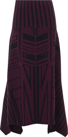Give your winter wardrobe a graphic twist with this geometric jacquard skirt. The handkerchief hem adds flow to every step, while the fitted waist keeps it polished. Complete with the matching top.