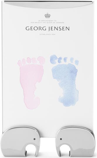 Luminous stainless steel elephants hold up the glass of this beautiful frame that s a sweet and elegant way to show baby s photos.