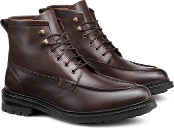 A Goodyear welt increases the durability of this lug-sole leather boot rounded out with a moc toe to complement the rugged look.